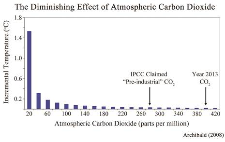 In addition, this lack of a relationship between CO2 and global average temperature should not be a surprise since while CO2 IS a greenhouse gas and while its presence does result in net warming of the Earth's atmosphere, its ability to contribute to FURTHER warming is limited (see Image G).